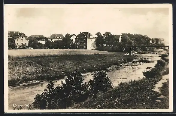 AK Löhne i. W., Uferpartie mit Brücke