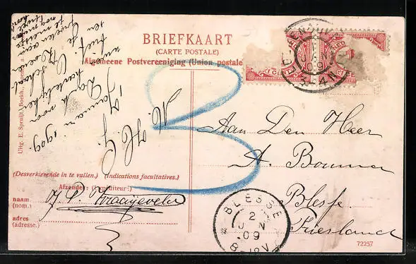 gelaufen 1909, rückseitig Oberflächenschaden, guter Zustand