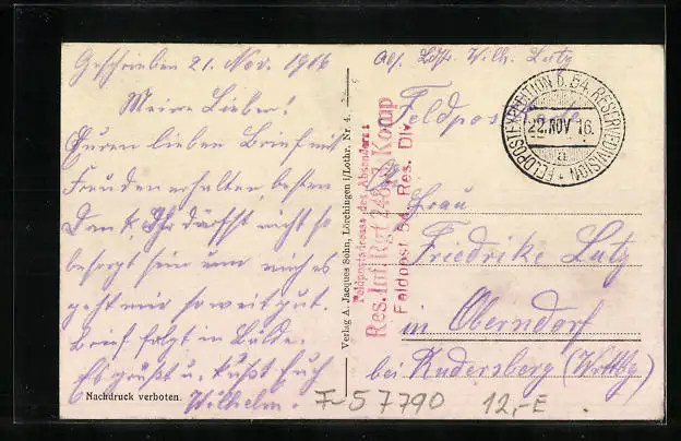 alte Ansichtskarte, gelaufen 1916 als Feldpost, guter Zustand