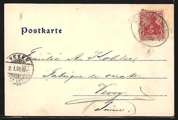 gelaufen 1904, Eckknick unten re., Stempelspur, guter Zustand