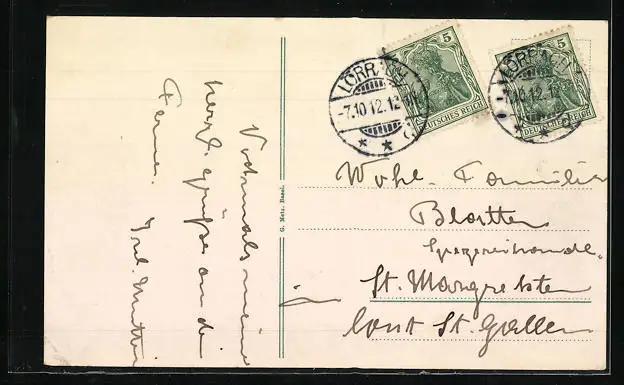 gelaufen 1912, Eckknick unten rechts, guter Zustand