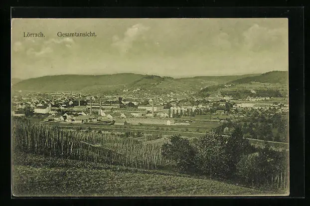 AK Lörrach, Gesamtansicht der Stadt von den Feldern aus