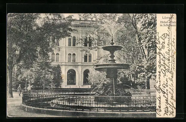AK Lörrach, Hebel-Platz mit Schulhaus