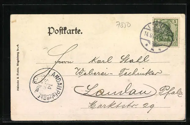 alte Ansichtskarte, gelaufen 1905, guter Zustand