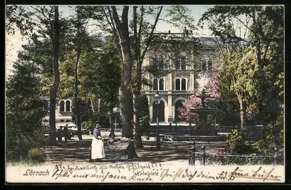 AK Lörrach, Hebelplatz mit Brunnen