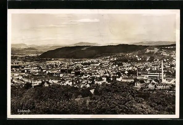 AK Lörrach, Ortsansicht aus der Vogelschau