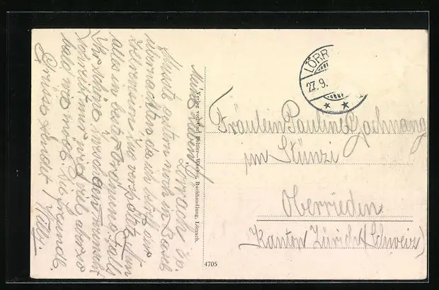 alte Ansichtskarte, gelaufen, Briefmarke entfernt, guter Zustand
