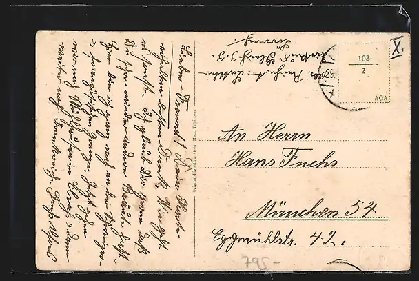 alte Ansichtskarte, gelaufen, Briefmarke entfernt, guter Zustand