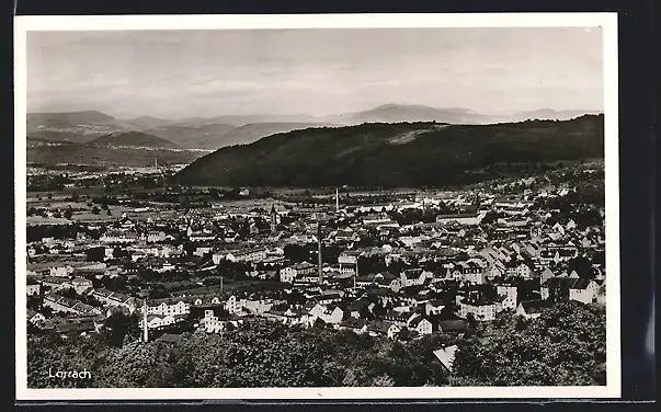 AK Lörrach, Ortsansicht mit Bergpanorama aus der Vogelschau