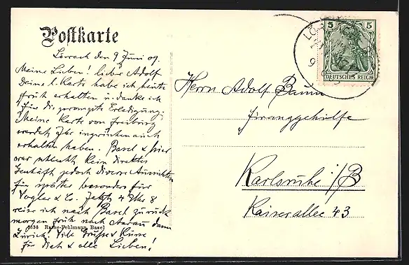 alte Ansichtskarte, gelaufen 1909, guter Zustand