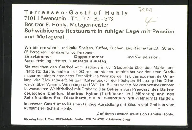 AK Löwenstein, Gasthof Hohly mit Terrasse im Sommer