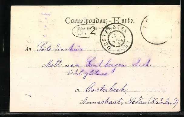 alte Ansichtskarte, gelaufen 1899, Briefmarke entfernt, rückseitig Oberflächenschaden, guter Zustand