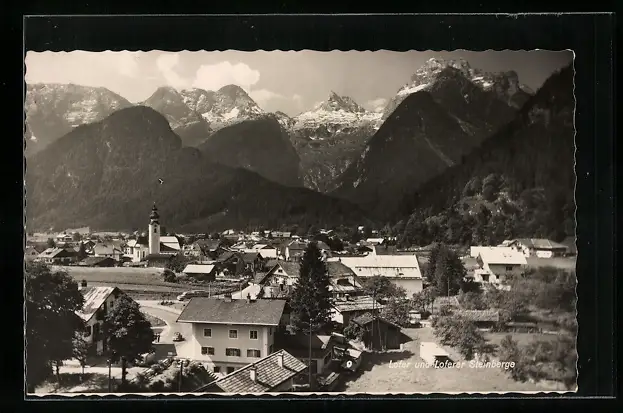 AK Lofer, Ortsansicht mit Loferer Steinbergen