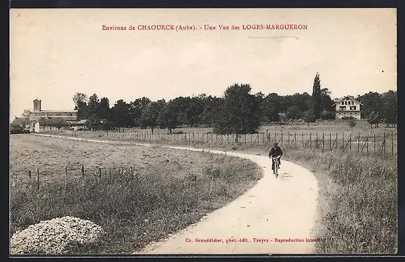 AK Loges-Margueron, Une vue avec cycliste sur chemin rural