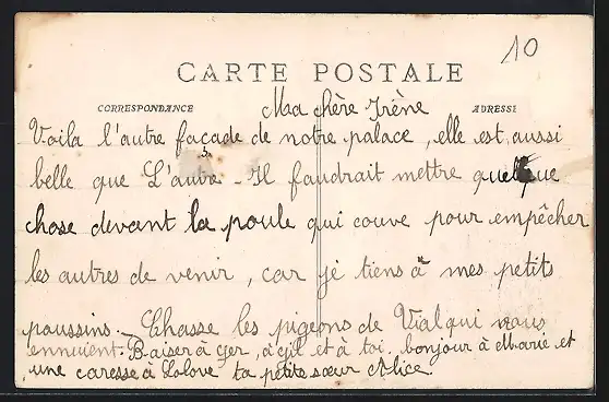 Personenbezogene Daten auf der Rückseite der Karte wurden durch blauen Textmarker unkenntlich gemacht. Die blauen Stellen sind auf die Vorderseite durchgeweicht und wirken sich negativ auf das Postkartenfoto aus