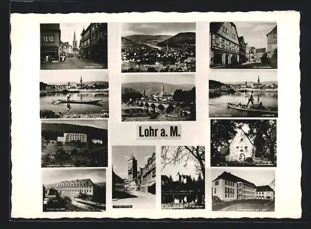 AK Lohr / Main, Gesamtansicht, Markplatz, Kirche, Gasthaus, Gondelfahrt