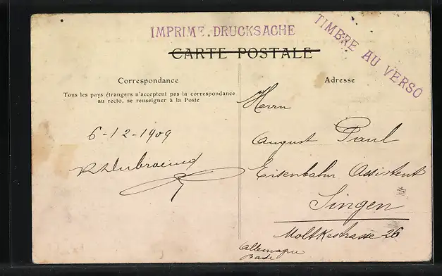 alte Ansichtskarte, gelaufen 1909, guter Zustand