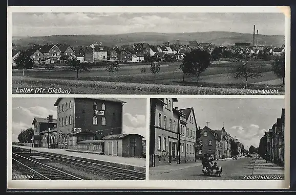 AK Lollar, Bahnhof, Strasse, Totalansicht