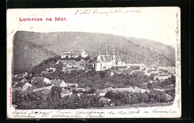 AK Lomnice na Mor, Teilansicht mit Kirche