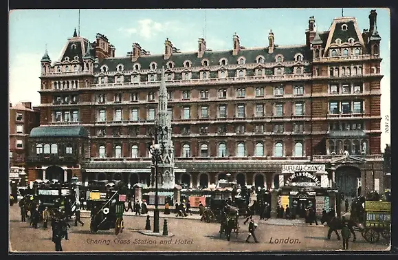 AK London, Charing Cross Station and Hotel, Bahnhof