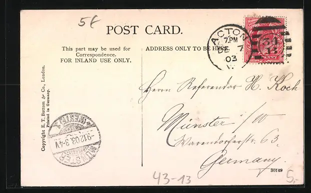 alte Ansichtskarte, gelaufen 1903, Eckknick links unten, guter Zustand