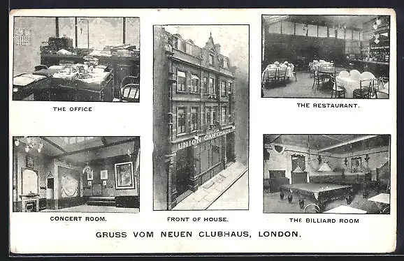 AK London, Clubhaus Union Ganymede mit Innenansichten
