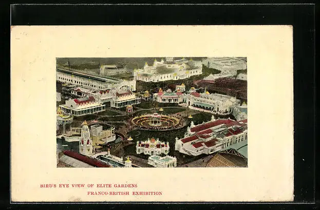 AK London, Franco-British Exhibition, Bird`s Eye View of Elite Gardens