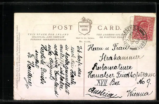 gelaufen 1908, Eckknick re. unten, guter Zustand