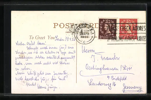 alte Ansichtskarte, gelaufen 1955, Stempelspur, guter Zustand