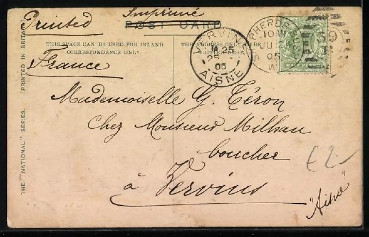 alte Ansichtskarte, gelaufen 1905, Eckknicke oben, guter Zustand