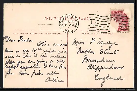 alte Ansichtskarte, gelaufen 1905, Briefmarke entfernt, rückseitig Oberflächenschaden, Eckknicke oben, guter Zustand