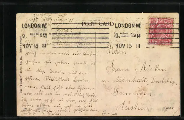 alte Ansichtskarte, gelaufen 1911, Stempelspur, guter Zustand