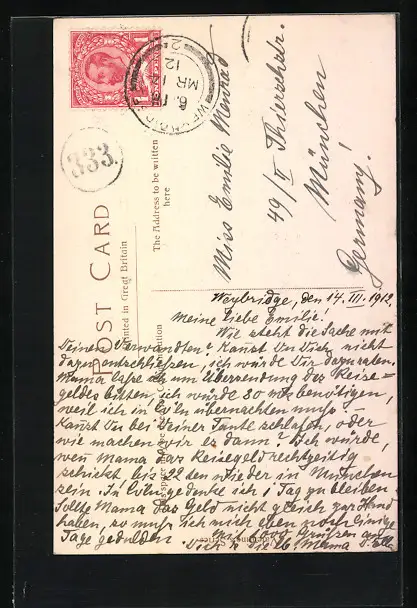 alte Ansichtskarte, gelaufen 1912, guter Zustand