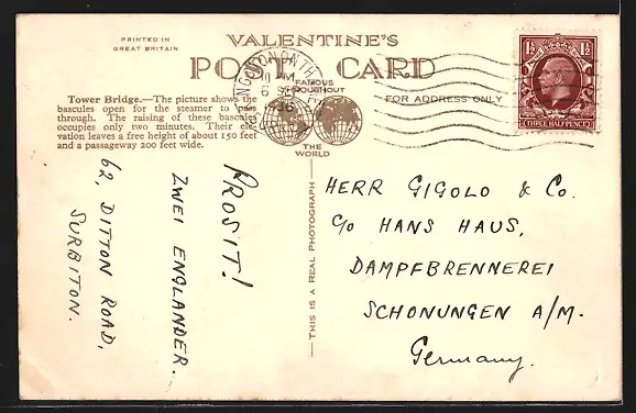 alte Ansichtskarte, gelaufen 1936, Eckknick unten rechts, guter Zustand