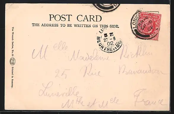 alte Ansichtskarte, gelaufen 1902, Eckknicke oben, Stempelspur, guter Zustand