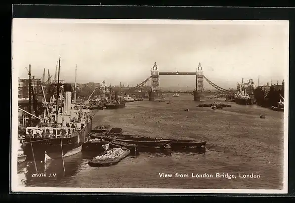 AK London, View from London Bridge, Hafenanlage mit Dampfer