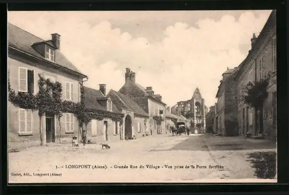 AK Longpont, Grande Rue du Village, Vue prise de la Porte fortifiée