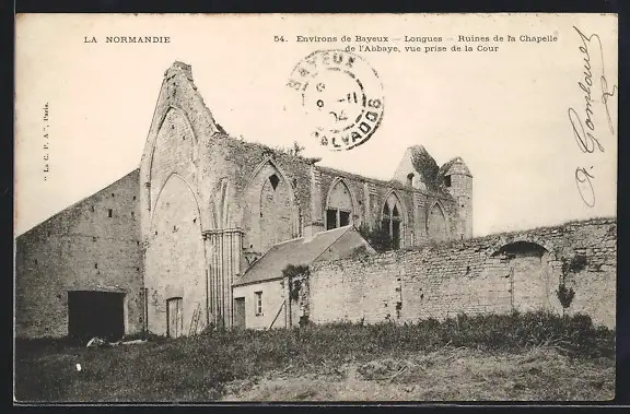 AK Longues, Ruines de la Chapelle de l`Abbaye, vue prise de la Cour