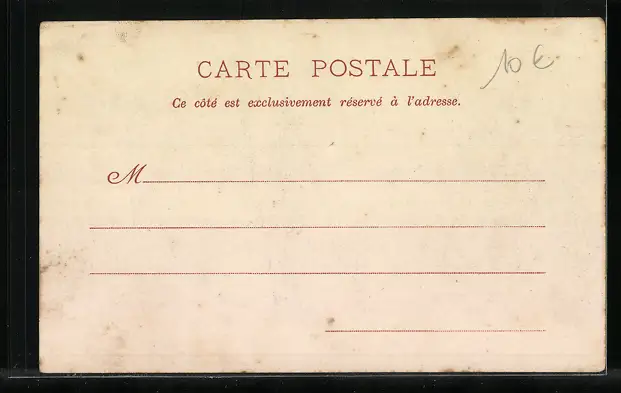 Personenbezogene Daten auf der Rückseite der Karte wurden durch blauen Textmarker unkenntlich gemacht. Die blauen Stellen sind auf die Vorderseite durchgeweicht und wirken sich negativ auf das Postkartenfoto aus