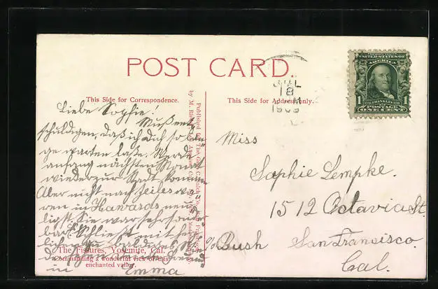 Personenbezogene Daten auf der Rückseite der Karte wurden durch blauen Textmarker unkenntlich gemacht. Die blauen Stellen sind auf die Vorderseite durchgeweicht und wirken sich negativ auf das Postkartenfoto aus
