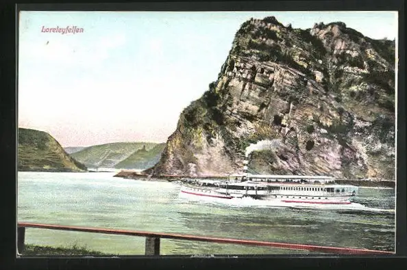AK Loreleyfelsen wird von einem Dampfer passiert