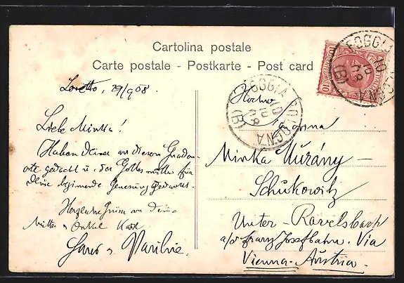 alte Ansichtskarte, gelaufen 1908, Eckknick re. unten, guter Zustand