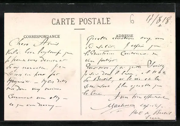 Personenbezogene Daten auf der Rückseite der Karte wurden durch blauen Textmarker unkenntlich gemacht. Die blauen Stellen sind auf die Vorderseite durchgeweicht und wirken sich negativ auf das Postkartenfoto aus