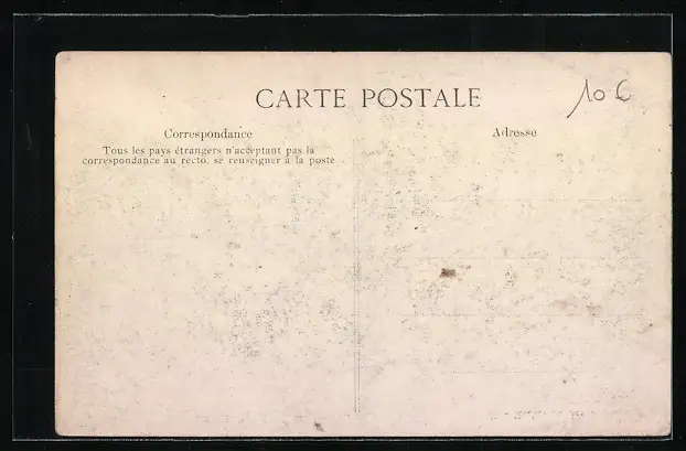 Personenbezogene Daten auf der Rückseite der Karte wurden durch blauen Textmarker unkenntlich gemacht. Die blauen Stellen sind auf die Vorderseite durchgeweicht und wirken sich negativ auf das Postkartenfoto aus