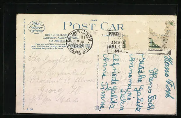 alte Ansichtskarte, gelaufen 1923, Briefmarke entfernt, rückseitig Oberflächenschaden, guter Zustand