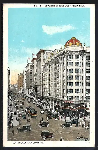 AK Los Angeles, CA, Seventh Street West from Hill, Strassenbahn