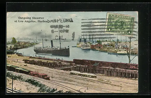 AK Los Angeles, Outgoing Steamer at L. A. Harbour, Hafen