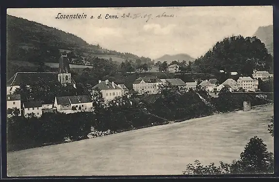 AK Losenstein a. d. Enns, Flusspartie mit Ortsansicht