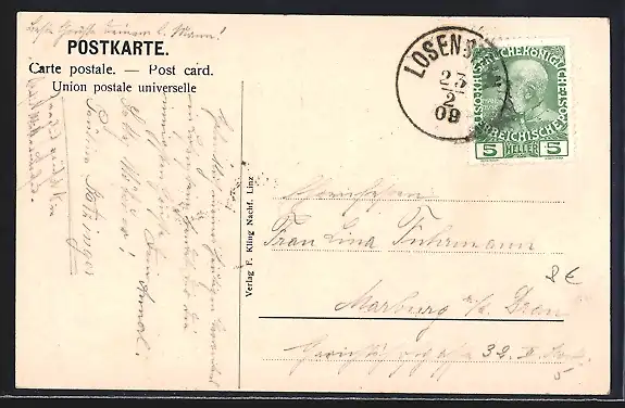 alte Ansichtskarte, gelaufen 1909, guter Zustand