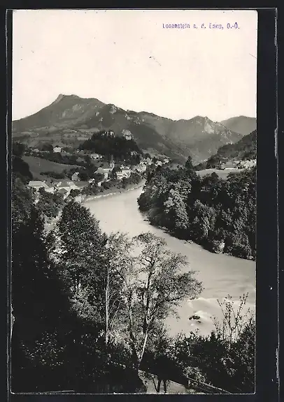 AK Losenstein a. d. Enns, Ortsansicht mit Enns und Bergpanorama